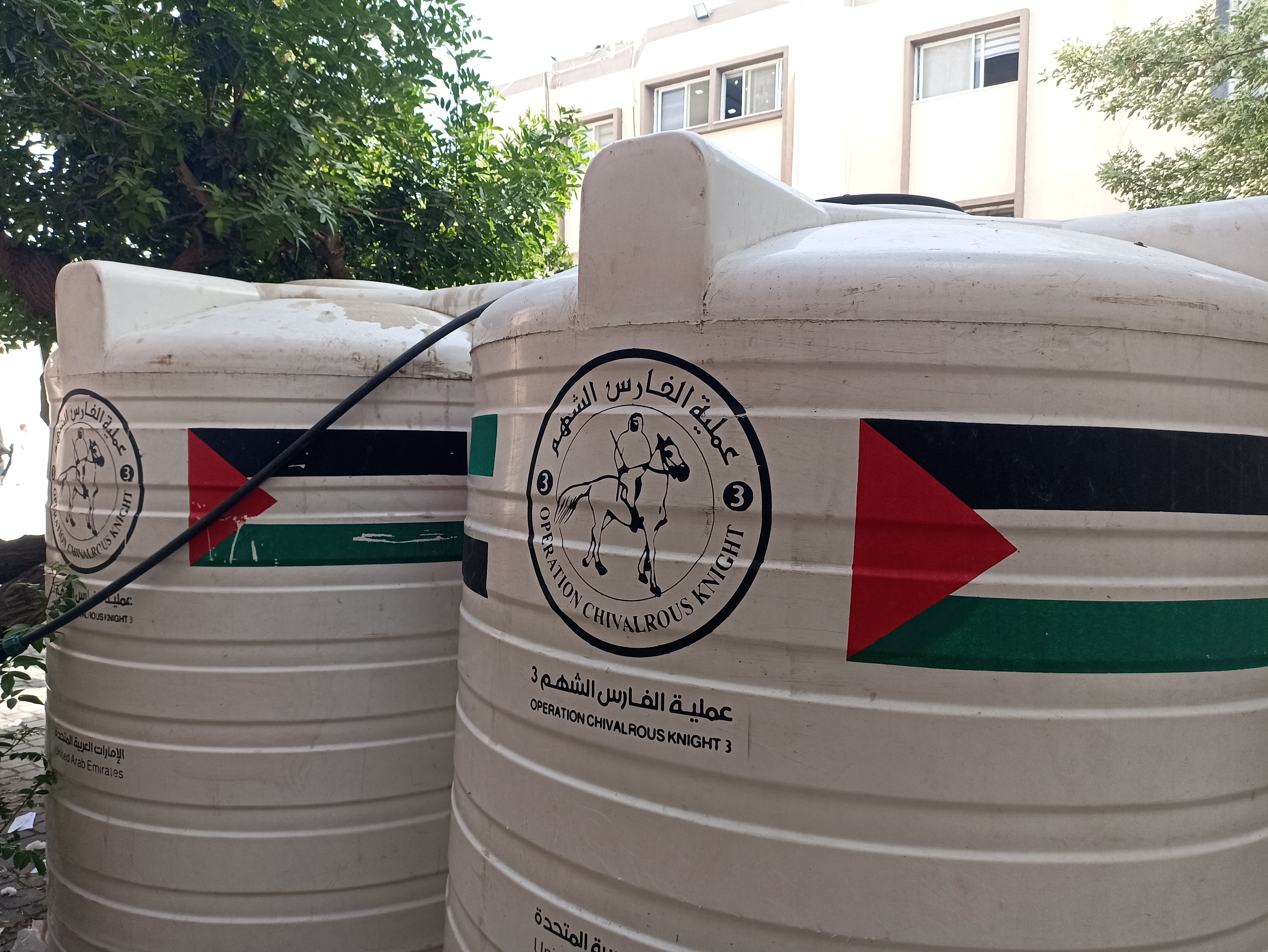 عملية (الفارس الشهم 3) تُقدم خزانات مياه صالحة للشرب لمجمع ناصر الطبي بمحافظة خانيونس