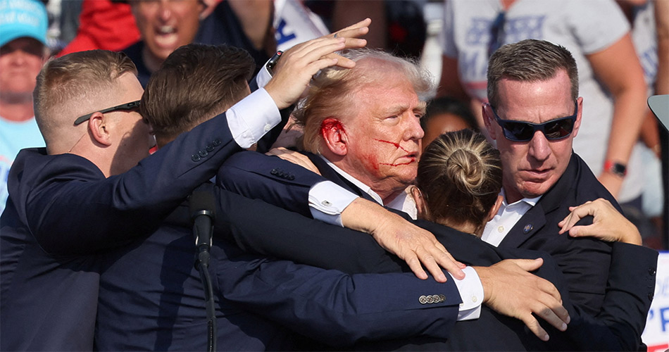 وأظهرت لقطات مصورة أصوات أعيرة نارية متعددة أثناء كلمة ترمب، كما أظهرت الصور دماء على أذنه، إضافة إلى قناصة على سطح قريب من المنصة التي كان يقف عليها ترمب.