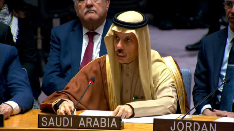 وشدد الوزير السعودي على أن قيام الدولة الفلسطينية المستقلة حقٌ أصيل وأساس للسلام، وليس نتيجة نهائية يتم التفاوض عليها ضمن عملية سياسية بعيدة المنال.