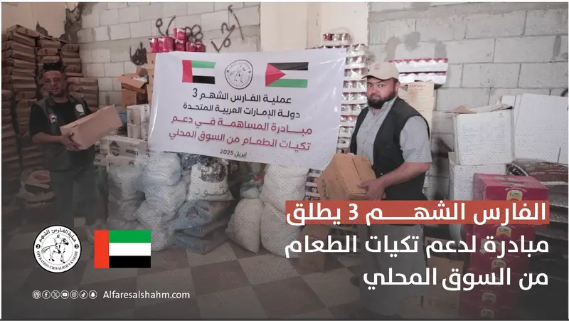 وفي ظل استمرار إغلاق المعابر وتعثر وصول المساعدات الإنسانية إلى القطاع، أطلقت الفارس الشهم 3، مبادرة جديدة لشراء مستلزمات تكيات الطعام من السوق المحلي، مما أسهم في توفير وجبات غذائية يومية إلى مايقارب 50 ألف نازح.