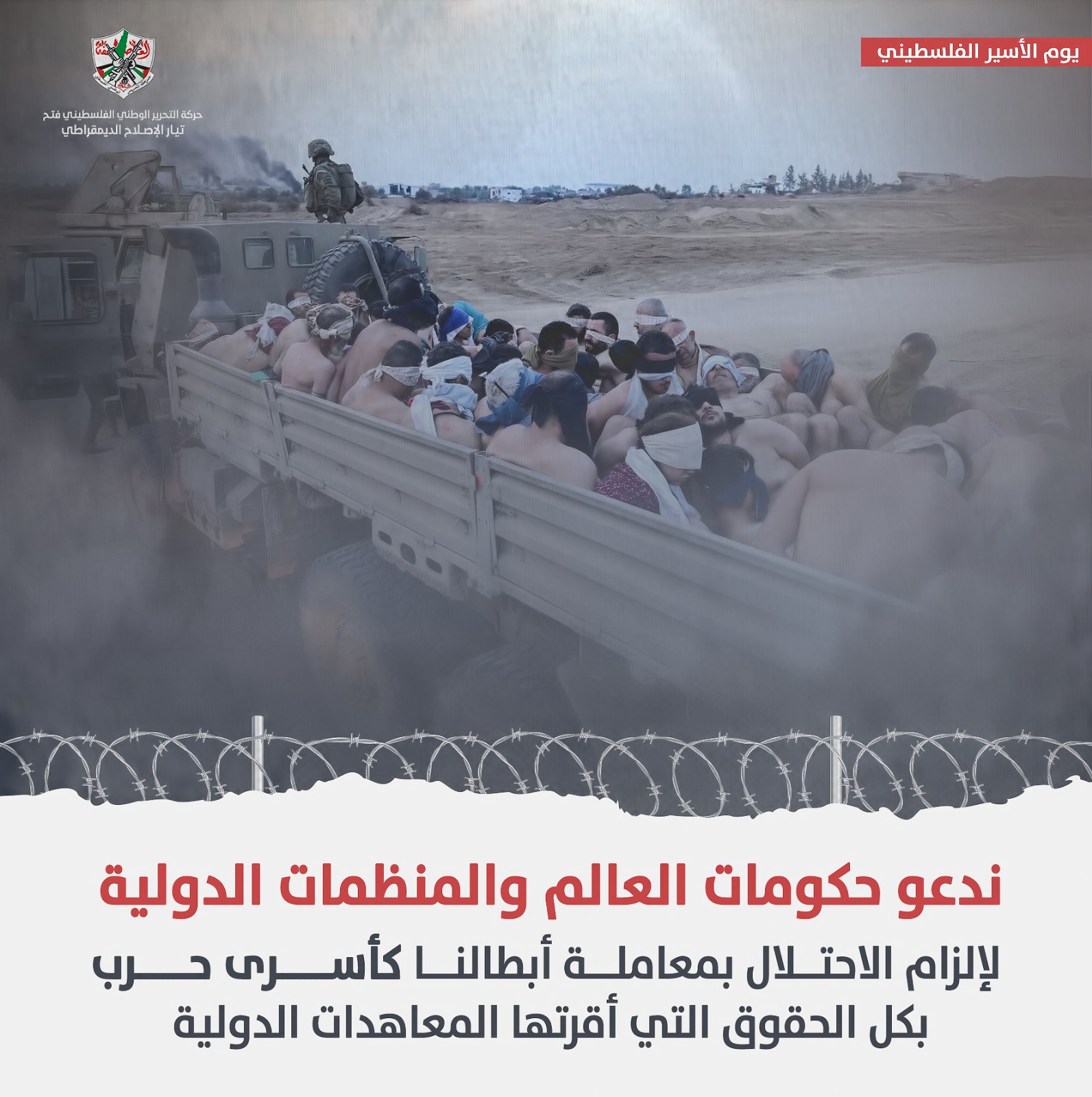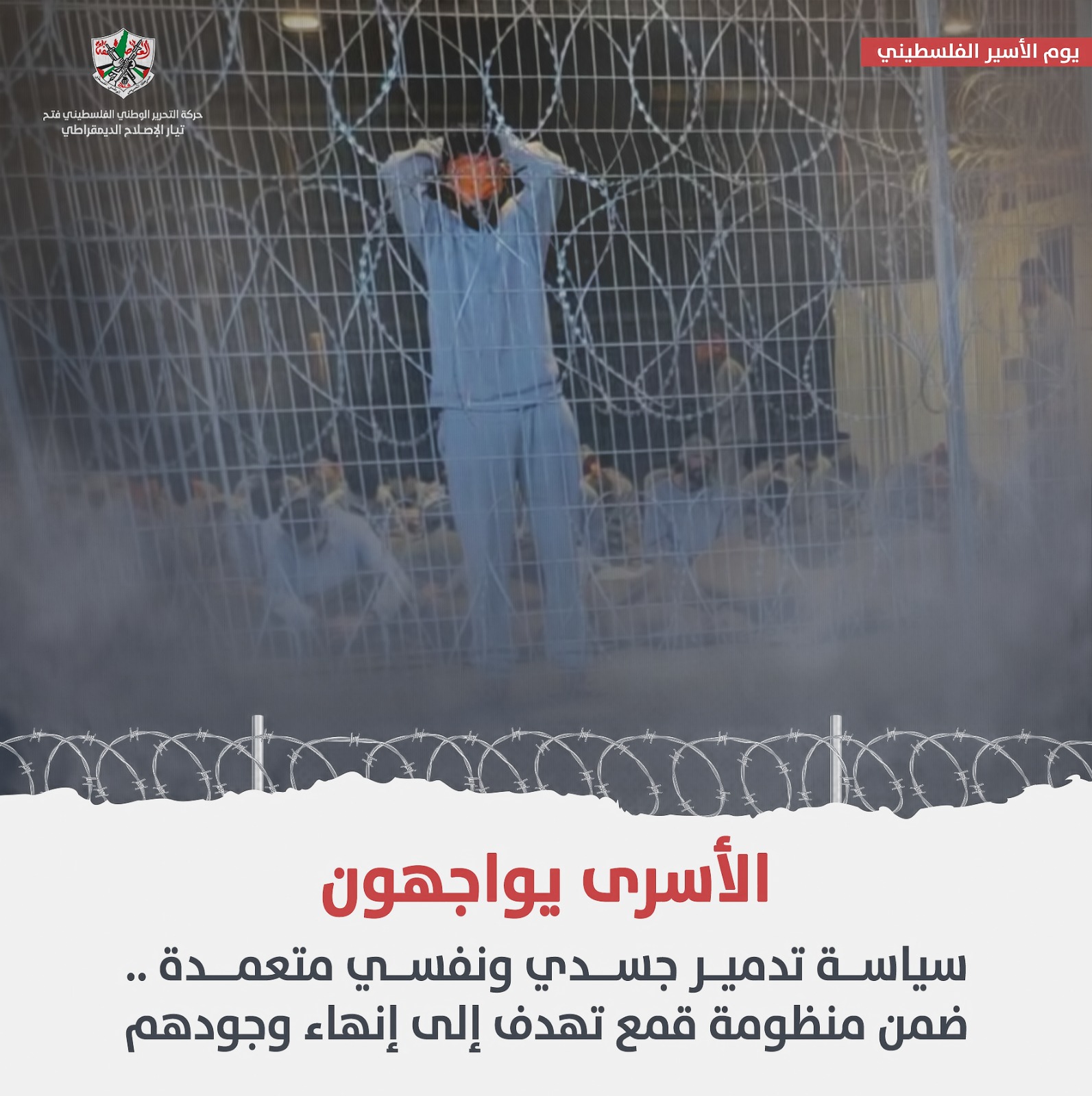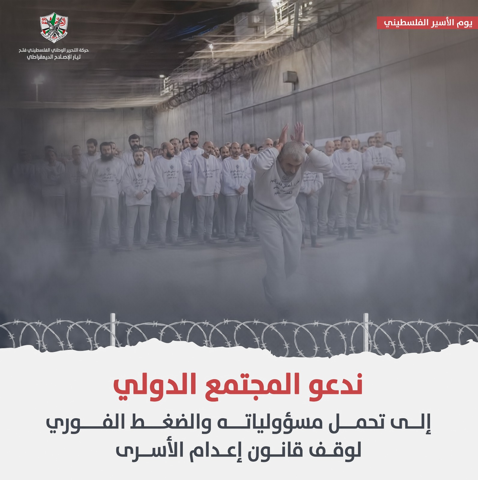تيار الإصلاح الديمقراطي يُطلق حملة إلكترونية دعمًا للأسرى بمناسبة يوم الأسير الفلسطيني
