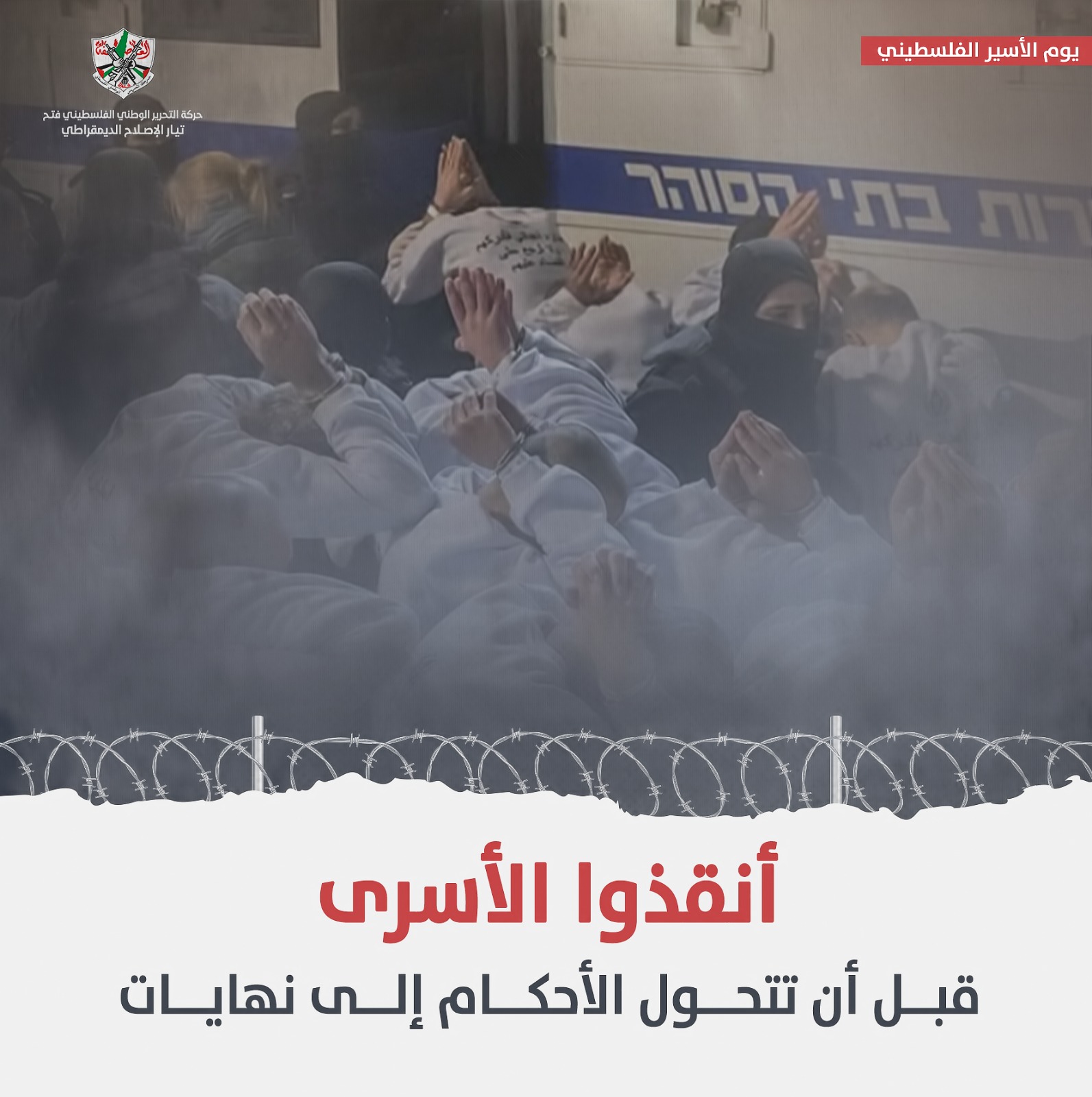 أطلق تيار الإصلاح الديمقراطي في حركة فتح، اليوم الخميس، حملة إعلامية إلكترونية واسعة، إسنادًا للأسرى الفلسطينيين في سجون الاحتلال، وذلك تزامنًا مع إحياء يوم الأسير الفلسطيني.