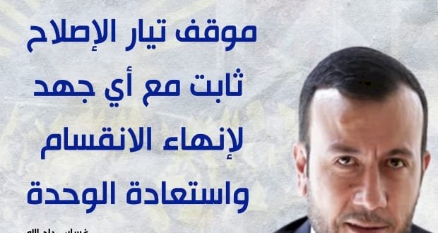 كما جاء فيه تصريح عماد محسن الناطق باسم تيار الاصلاح الديمقراطي أن العلاقة مع القوى والفصائل الوطنية بما فيها حركة حماس، تُبنى على أساس الشراكة الوطنية، مضيفا إن التيار جاد في بناء شراكة وطنية مع القوى الوطنية بما فيها حماس، وقد ساهم في المصالحة المجتمعية التي شملها اتفاق المصالحة الوطنية عام 2011، وأنهى بالشراكة مع حركة حماس والقوى الوطنية أكثر من 140 حالة من شهداء الانقسام، من خلال تحقيق المصالحة المجتمعية بين أطياف الشعب الفلسطيني.