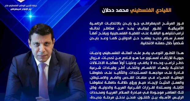 القيادي الفلسطيني محمد دحلان: "فوز جو بايدن يفتح آفاق السلام وينعش حل الدولتين"