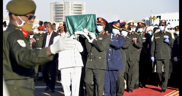ووصل مطار الخرطوم، جثمان المهدي (85 عاما) الذي وافته المنية الخميس في الإمارات، جراء إصابته بفيروس كورونا.
