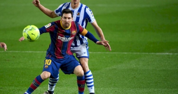 وشارك ميسي في فوز فريقه الصعب على ريال سوسيداد.