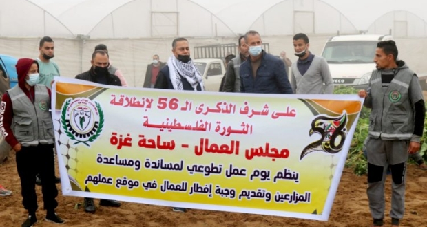 ضمن سلسة فعاليات إحياء الذكرى الــ 65 لانطلاقة الثورة ، نفذ مجلس العمال ساحة غزة في محافظة رفح فعالية تطوعية لمساعدة العمال في جني محصول البطاطا.