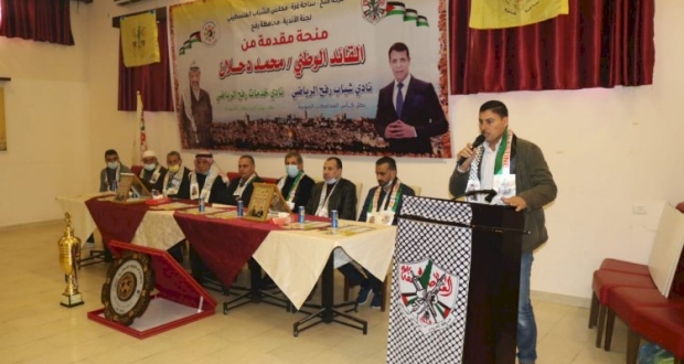 نظمت لجنة الأندية بمجلس الشباب الفلسطيني، اليوم الأربعاء، وبمناسبة الذكرى 56 لانطلاقة حركة فتح حفلاً لتوزيع منحة النائب محمد دحلان لتكريم كلآ من بطل كأس المحافظات الجنوبية "نادي شباب رفح الرياضي"، وبطل دوري المحافظات الجنوبية "نادي خدمات رفح" .