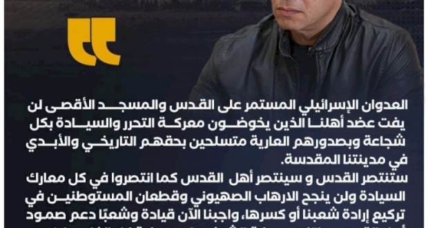 انفو: القائد دحلان: ستنتصر القدس وأهلها ولن ينجح الإرهاب الصهيوني في تركيع إرادة شعبنا