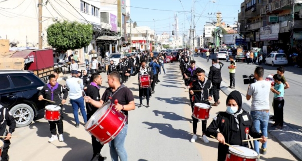 نظمت لجنة مستقبل وطن الكشفية بمجلس الشباب الفلسطيني في حركة فتح بساحة غزة، اليوم الخميس، مسيراً كشفياً وفاءً لدماء شهداء العدوان على غزة .