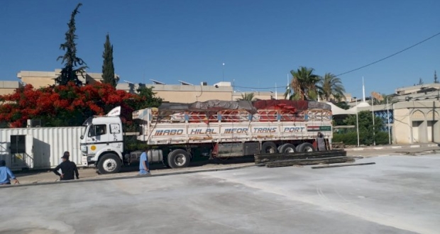 ووصلت الدفعة الاولى من الشاحنات (70) المحملة بكافة المعدات والتي ستصل تباعاً عبر معبر رفح، وقد تم الانتهاء من وضع الأساسيات الخرسانية تمهيداً لوصول أجزاء المستشفى.