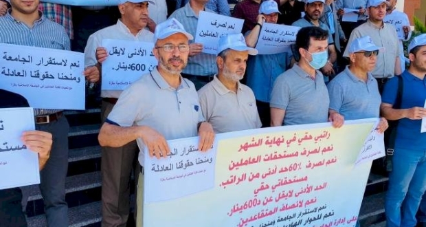 نقابة العاملين بالجامعة الاسلامية تنظم وقفة احتجاجية بشأن الرواتب
