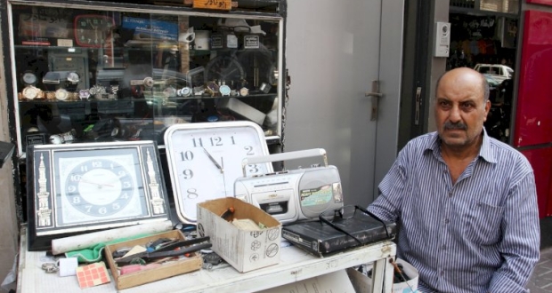 في تمام الساعة السابعة صباحاً، يذهب الساعاتي حيدر محمود (63) عاماً إلى سوق الزاوية، ليبدأ بتجهيز بسطة البيع الخاصة به، وعرض الساعات عليها، وتحضير الأدوات التي تلزم لتصليحها.