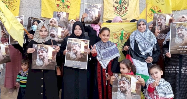 وحملت الأخوات صوراً للراحل أبو عمار مستذكرين بها عباراته الثورية البطولية الخالدة فينا.