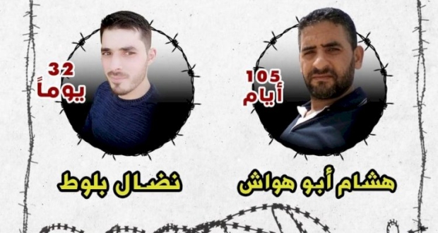 يواصل المعتقلان هشام أبو هواش ونضال بلوط إضرابهما عن الطعام رفضًا لاعتقالهما إداريًا.