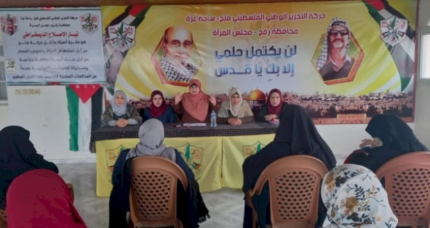 نظم مجلس المرأة بحركة فتح في محافظة رفح صباح اليوم، ندوة دينية بعنوان: "ذكرى الإسراء والمعراج"، في قاطع شرق ووسط المحافظة، بحضور نبيلة أبو طوق ميسر أعمال مجلس المرأة والداعيتين حنان أبو سمرة و سائدة زنون وأمناء سر القواطع وعدد من الأخوات مسؤولات المناطق بالمحافظة.