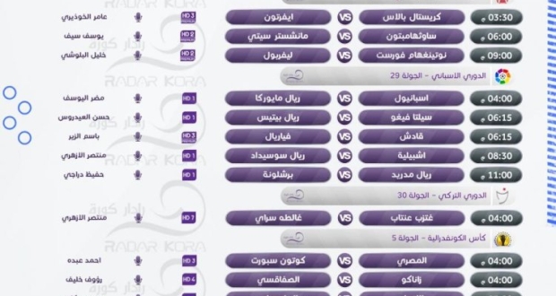 تتجه أنظار عشاق كرة القدم اليوم الأحد لعدة مباريات في الدوريات، والكؤوس الأوروبية، وبطولة الكونفدرالية الإفريقية.