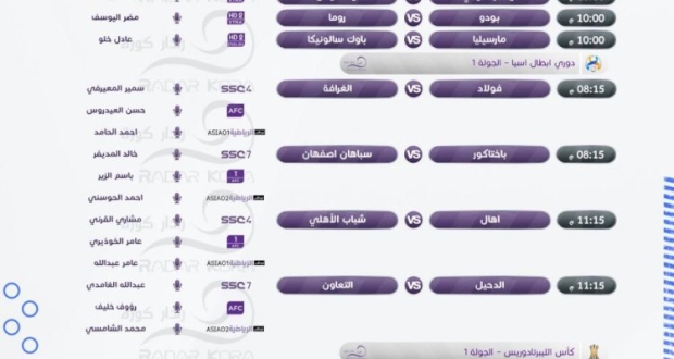 تتجه أنظار عشاق كرة القدم اليوم الخميس لمباريات ذهاب الدور ربع النهائي من الدوري الأوروبي، ودوري المؤتمر الأوروبي، ومرحلة المجموعات من دوري أبطال أسيا.