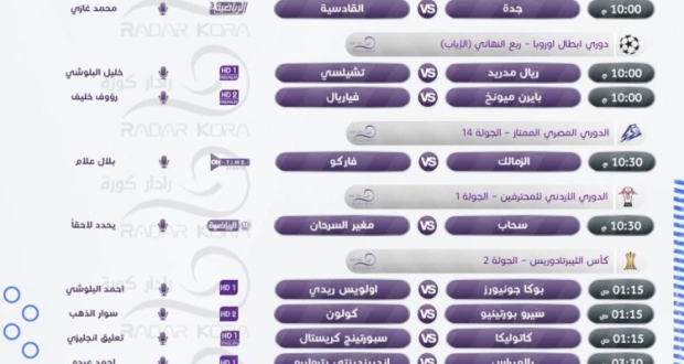 جدول أبرز مباريات الثلاثاء بأبطال أوروبا والدوري المصري