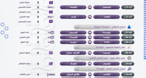جدول أبرز مباريات الأربعاء في البطولات المختلفة