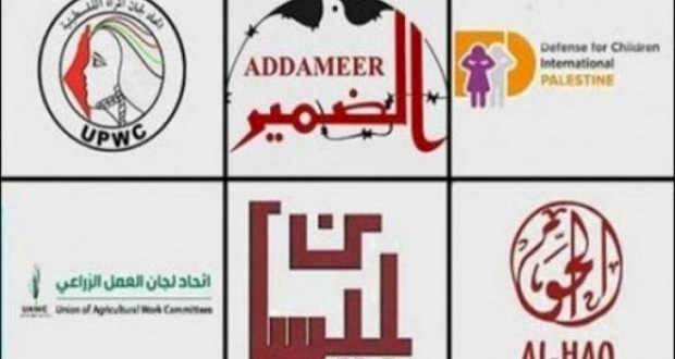 والمؤسسات هي: مؤسسة الضمير لرعاية الأسير وحقوق الإنسان، والحركة العالمية للدفاع عن الأطفال – فلسطين، ومؤسسة الحق، واتحاد لجان العمل الزراعي، واتحاد لجان المرأة الفلسطينية، ومركز بيسان للبحوث والإنماء.