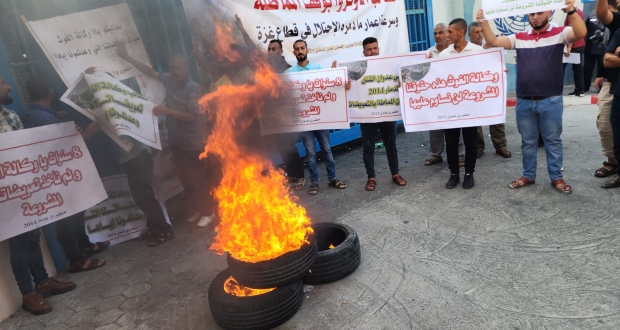 نظم المتضررون من عدوان الاحتلال على قطاع غزة عام 2014، وقفة احتجاجية أمام مقرِ وكالة الغوث للمطالبة بالإسراعِ في صرف التعويضات بعد صبر 8 أعوام منذ انتهاء العدوان.