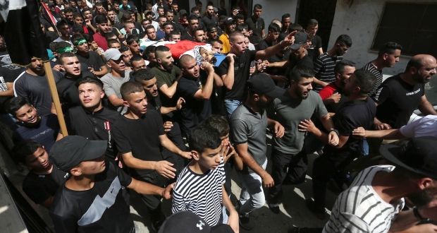 وهتف المشيعون بعبارات غاضبة تنديدا بجرائم الاحتلال بحق أبناء شعبنا الفلسطيني، ورفعوا العلم الفلسطيني.