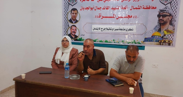 نفذ مجلس المرأة ولجنة التعبئة الفكرية في حركة فتح بمحافظة الشمال، اليوم السبت، لقاءً تزامن مع الذكرى الـ 40 لمذبحة صبرا وشاتيلا، بحضور الأخوات هيئة المجلس، والأخوات الفاعلات بقواطع المحافظة.
