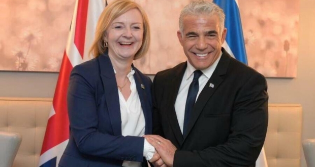 وبحسب الصحيفة، فإن رئيسة وزراء بريطانيا ليز تراس، قد نقلت رسالة بهذا الخصوص إلى رئيس الوزراء الإسرائيلي يائير لابيد خلال لقائهما الأخير على هامش اجتماع الجمعية العمومية للأمم المتحدة. بحسب ما ذكرت هيئة البث الإسرائيلية العامة الناطقة بالعربية.