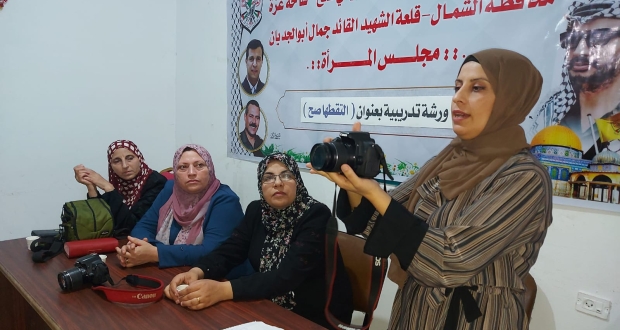 من جانبها تحدثت سائدة الزعنون منسق لجنة التواصل المجتمعي، حول أهم المواضيع الأساسية التي ينبغي أن يلمّ بها المصور الفوتوغرافي، وهي كيفية مسك الكاميرا وفتحها واغلاقها، وعدة مواضيع أخرى مثل التحكم في الإضاءة وضبط الألوان، والمعدات المطلوبة للتصوير وميزات مختلف العدسات، وضبط الفوكس أثناء تصوير الأشخاص وغيرها ، مبينة إلى بعض المشاكل الشائعة التي يواجهها المصوّر مثل: الإضاءة في الأماكن الضيقة، وعدم اختيار الزاوية الصحيحة لأخذ الصورة، وعدم اكتمال كافة مكونات الصورة الجيدة.