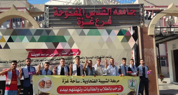 حركة الشبيبة الفتحاوية بمحافظة غزة تستقبل، اليوم الثلاثاء، الطلبة الجدد في جامعة القدس المفتوحة فرع غزة.