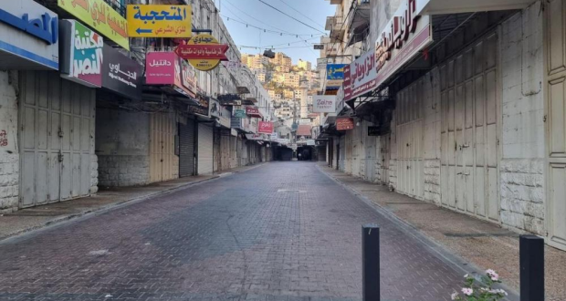 عم الإضراب الشامل اليوم الأربعاء، مدينة نابلس شمال الضفة الغربية المحتلة، تلبية لدعوة مجموعات "عرين الأسود".