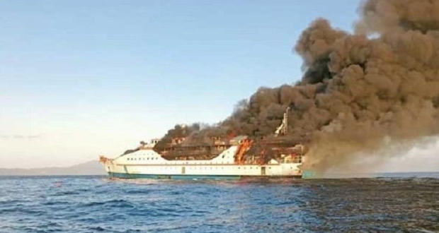 واندلعت النيران في السفينة قبالة ساحل جزيرة تيمور في مقاطعة نوسا تينجارا الشرقية، ما دفع الركاب اليائسين إلى القفز من السفينة إلى البحر.
