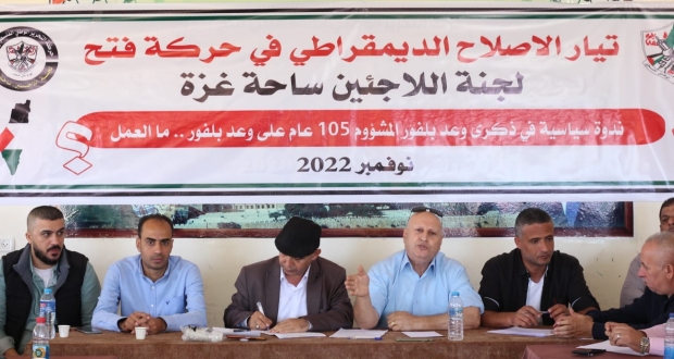 نظمت لجنة اللاجئين بمحافظة خانيونس ندوة سياسية بعنوان " 105 عام على وعد بلفور .. ما العمل ؟ "