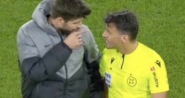 وبحسب صحيفة "موندو ديبورتيفو" الإسبانية، فإن حكم المباراة خيل مانزانو أشهر البطاقة الحمراء في وجه بيكيه بسبب اعتراضه على قراراته عقب صافرة نهاية الشوط الأول، وقبل الدخول لغرف تبديل الملابس.