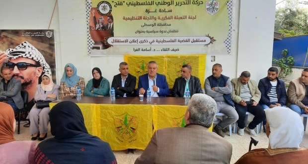 نظمت لجنة التعبئة الفكرية بساحة غزة ظهر اليوم ندوة سياسية في المحافظات الخمسة بعنوان "مستقبل القضية الفلسطينية في ذكرى إعلان وثيقة الاستقلال".