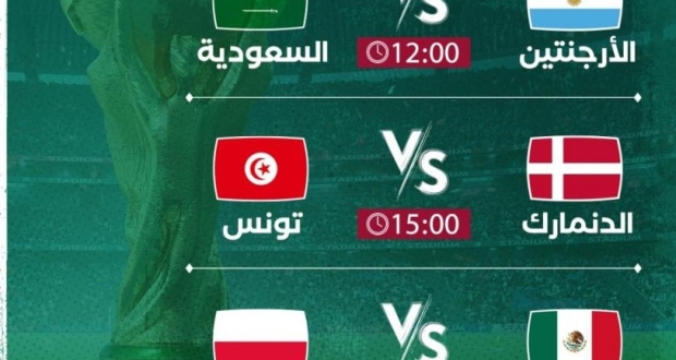 وتتواصل مباريات المجموعة الثالثة بلقاء المكسيك وبولندا عند الساعة السادسة مساءًا، وتنقل عبر قنوات "الكأس القطرية"، و beIN Sports HD 1 Max، و beIN Sports HD 3 Max، و beIN Sports HD 4 Max، و beIN Sports Connect، و beIN 4K HDR.