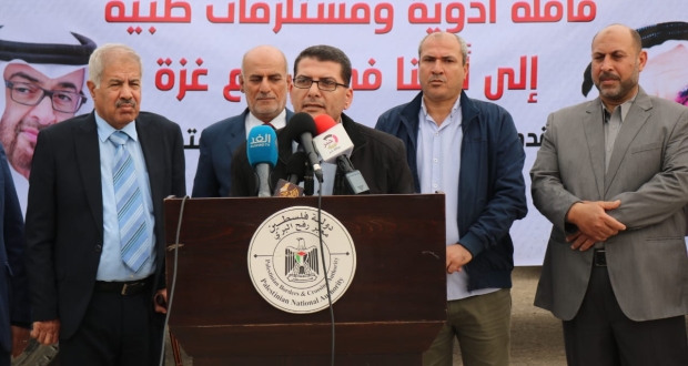 قال مدير المستلزمات الطبية في وزارة الصحة بغزة، محمود حماد : "تسلمت وزارة الصحة شاحنات من الأدوية الطبية والمستلزمات والمهمات الطبية، بتبرع سخي وكريم من دولة الإمارات الشقيقة وبمتابعة وتسهيل دائم من الأخ النائب محمد دحلان، وتأتي هذه القافلة بطلب من وزارة الصحة لدولة الإمارات الشقيقة وللأخ النائب محمد دحلان.