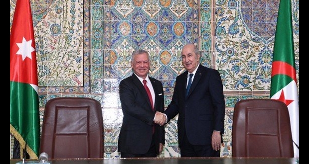 جاء ذلك في بيان أردني- جزائري مشترك، في ختام زيارة الملك عبد الله الثاني إلى الجزائر، وفق ما ذكرته وكالتا الأنباء الأردنية والجزائرية.