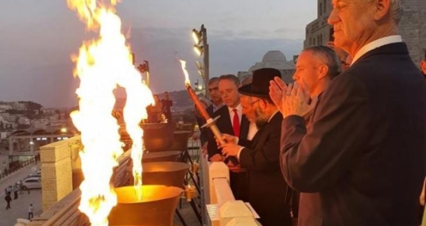أضاء وزير جيش الاحتلال الإسرائيلي بيني غانتس، مساء يوم الثلاثا، شمعة "حانوكا" عند حائط البراق في القدس .