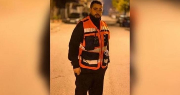 وأضافت: "أنّ المسعف "أبو حجر" أصيب بتهتك داخلي للكبد والكلى والحجاب الحاجز، وكسر في أربع ريش من القفص الصدري".