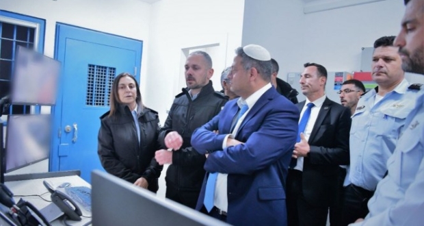 وتجول بن غفير في سجن نفحة، مساء أمس، في أول زيارة له لمصلحة السجون الإسرائيلية، بمرافقة مفوضة السجون، كيتي بيري، وعدد من الضباط السجانين.