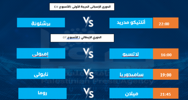 وفيما يلي مواعيد أبرز المباريات بتوقيت فلسطين، ومصر، والقنوات الناقلة: