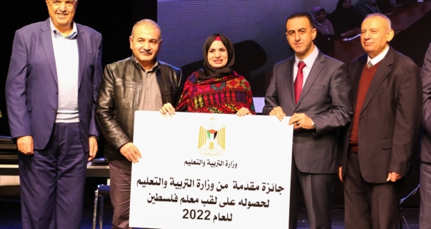 ونال لقب معلم فلسطين للعام 2022 المربية مها جمال أبو منشار في مدرسة بنات ياسر عمرو الثانوية من مديرية تربية الخليل.
