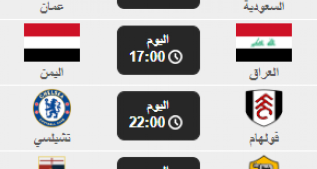 ويلعب منتخب السعودية مع عُمان، والعراق مع اليمن الساعة الخامسة مساءً بتوقيت فلسطين، ومصر، وتنقل البطولة عبر العديد من القنوات العربية، أبرزها الكأس، والعراقية الرياضية، والرابعة الرياضية، وعُمان الرياضية، والكويت الرياضية، والسعودية الرياضية، وأبو ظبي الرياضية الأولى، ودبي الرياضية الأولى.
