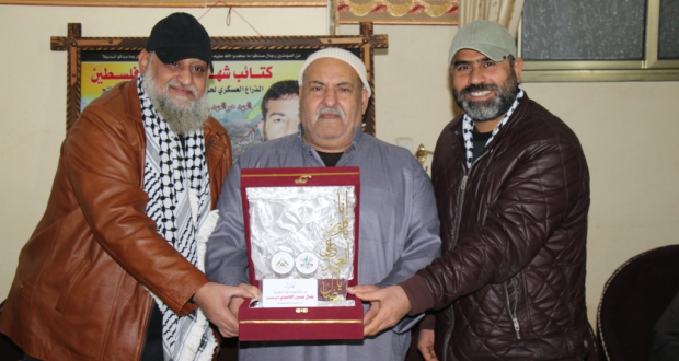 جاء ذلك في زيارة نفذتها قيادة الكتائب ممثلةً بالقائد العام أبو محمد، وقائد هيئة الأركان أبو أحمد، لمنزل عائلة الشهيد القائد «أبا حسين»، الذي اغتالته طائرات العدو الصهيوني المجرم أثناء تخطيطه لعملية فدائية جرى تنفيذها بعد اغتياله.