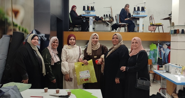 كرمت لجنة المرأة العاملة بمجلس العمال في محافظة غزة، اليوم السبت، العاملات في مشغل العشي للخياطة.