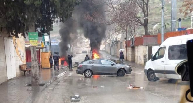 ووضع الشبان حاويات النفايات على الطرق، لعرقلة حركة الآليات الإسرائيلية التي تخطط لاقتحام البلدة.