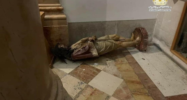 قالت محافظة القدس في بيان صحفي مقتضب، إن ثلاثة مستوطنين اقتحموا مبنى الكنيسة الواقع مقابل المدرسة العمرية، وقاموا بتكسير وتحطيم محتوياتها، وحاولوا إشعال النار فيها.