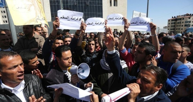 وشرع المعلمون مطلع الأسبوع الماضي بإضراب مفتوح في جميع مدارس الضفة، بعد رفض الحكومة تطبيق مجموعة تفاهمات مع المعلمين، أبرزها صرف الرواتب كاملة.